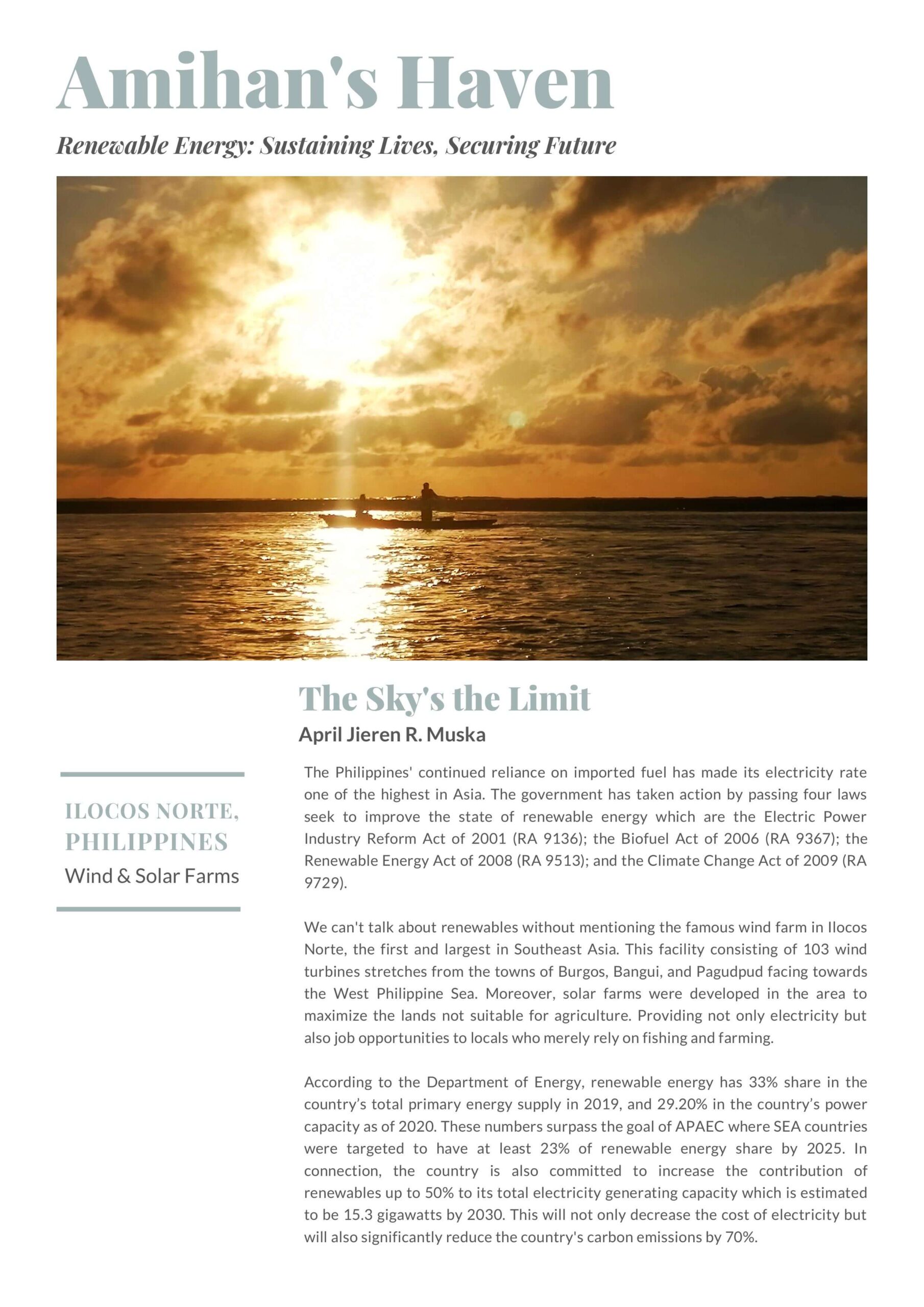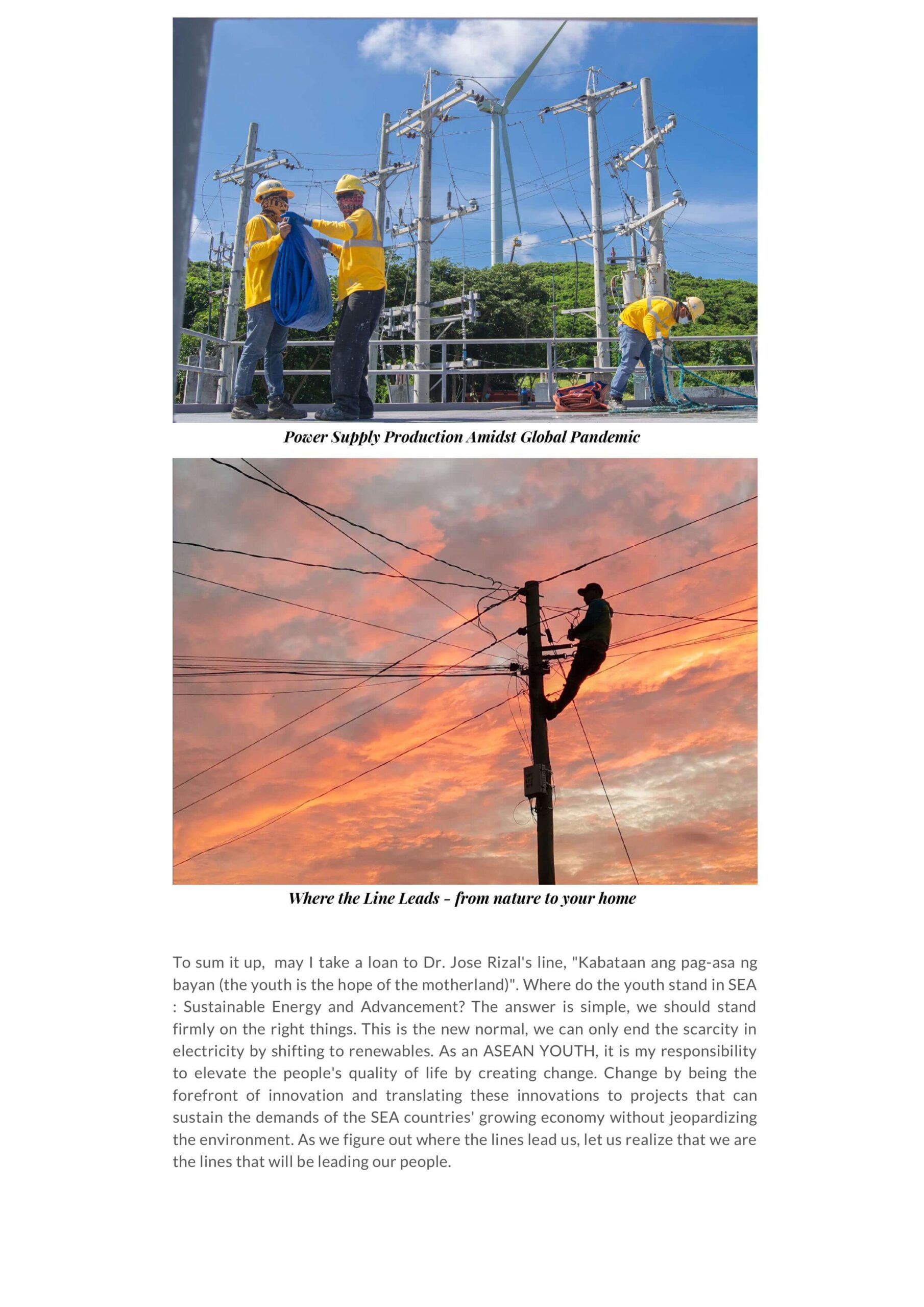 Disclaimer: the photo story is part of the ASEAN Photo Competition, implemented by the ASEAN Foundation and the ASEAN-German Energy Programme (AGEP) that focused on the theme of ”#ASEANYouth Shaping the Vision of Renewable Energy as the New Normal”. AGEP is commissioned by the Federal Ministry for Economic Cooperation and Development (BMZ) and implemented by the Deutsche Gessellschaft fürInternationale Zusammernabeit (GIZ) GmbH in close cooperation with the ASEAN Centre for Energy (ACE). The competition aims to contribute to the awareness of the benefits of renewable energy (solar, wind, hydro, tidal, geothermal, and biomass) paving the way for ASEAN’s cleaner and greener future. The contents of this photo story do not necessarily reflect the views of ASEAN Foundation or AGEP.