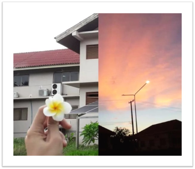 ພວກເຮົາລອງຈິນຕະນາການວ່າໂລກໃບນີ້ບໍ່ມີແສງໄຟບໍ່ວ່າຈະດ້ວຍແສງຈາກທຳມະຊາດຫລືຄົນສ້າງຂຶ້ນເຮົາກະບໍ່ອາດມີຊີວິດທີ່ສົມດູນໄດ້ເນື່ອງຈາກມະນຸດຕ້ອງເພິ່ງພາອາໄສທຳມະຊາດດ້ວຍກັນ.ເພາະສະນັ້ນແລ້ວຂ້າພະເຈົ້າໄດ້ຖ່າຍພາບຖະໜົນຫົນທາງຂອງບ້ານຂ້າພະເຈົ້າເອງທີ່ເມືອງປາກເຊ, ແຂວງຈໍາປາສັກ.ເຊິ່ງມັນໄດ້ສະແດງໃຫ້ເຫັນເຖິງບັນຍາກາດທີ່ມືດຄຶ້ມເຕັມໄປດ້ວຍເມກທີ່ແສນຈະໂສກເສົ້າພ້ອມທັງບໍ່ມີແສງໄຟໃດໆມາຊ່ວຍໃຫ້ຫົນທາງບ້ານເຮົາມີຊີວິດຊີວາເລີຍ.